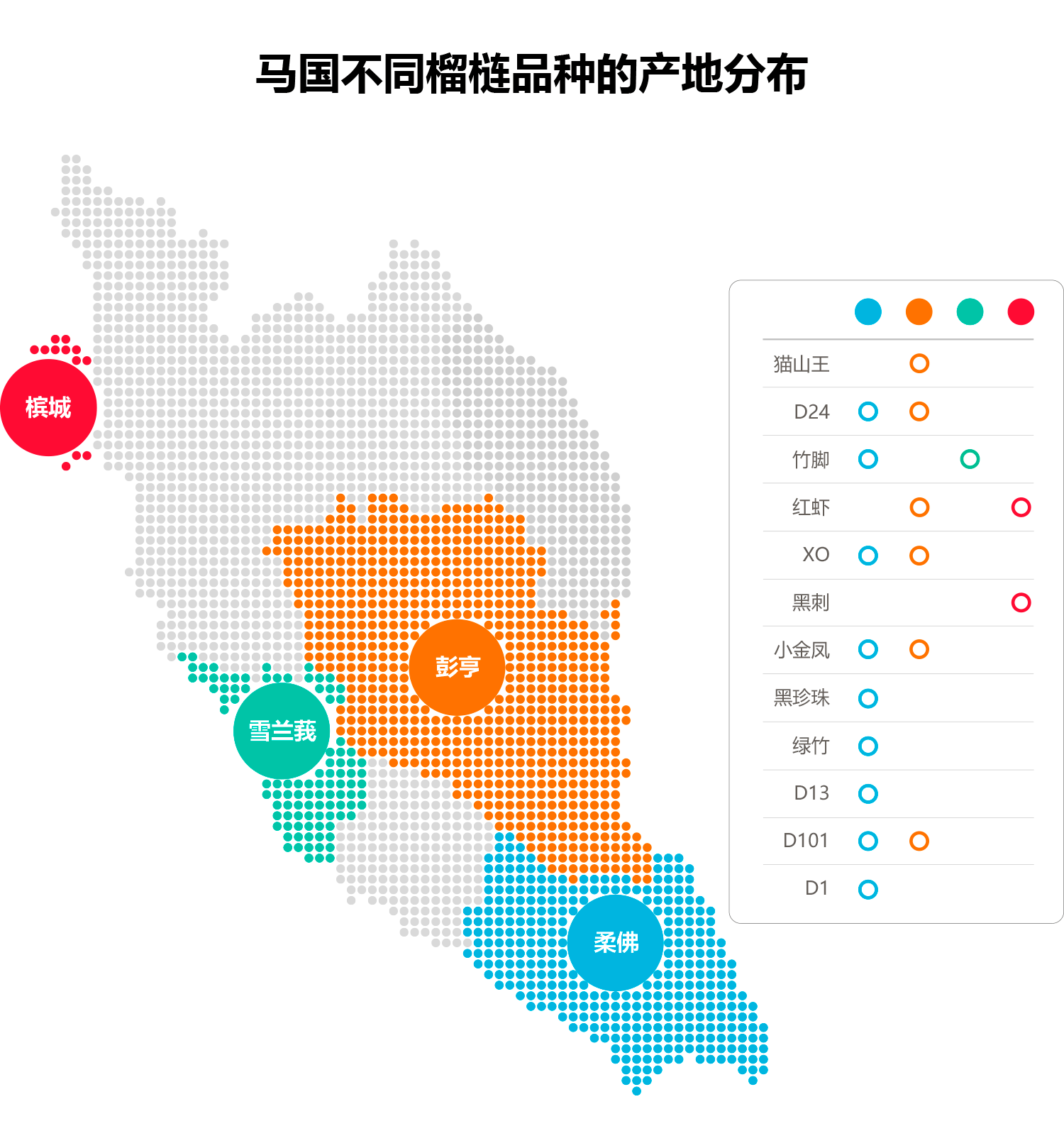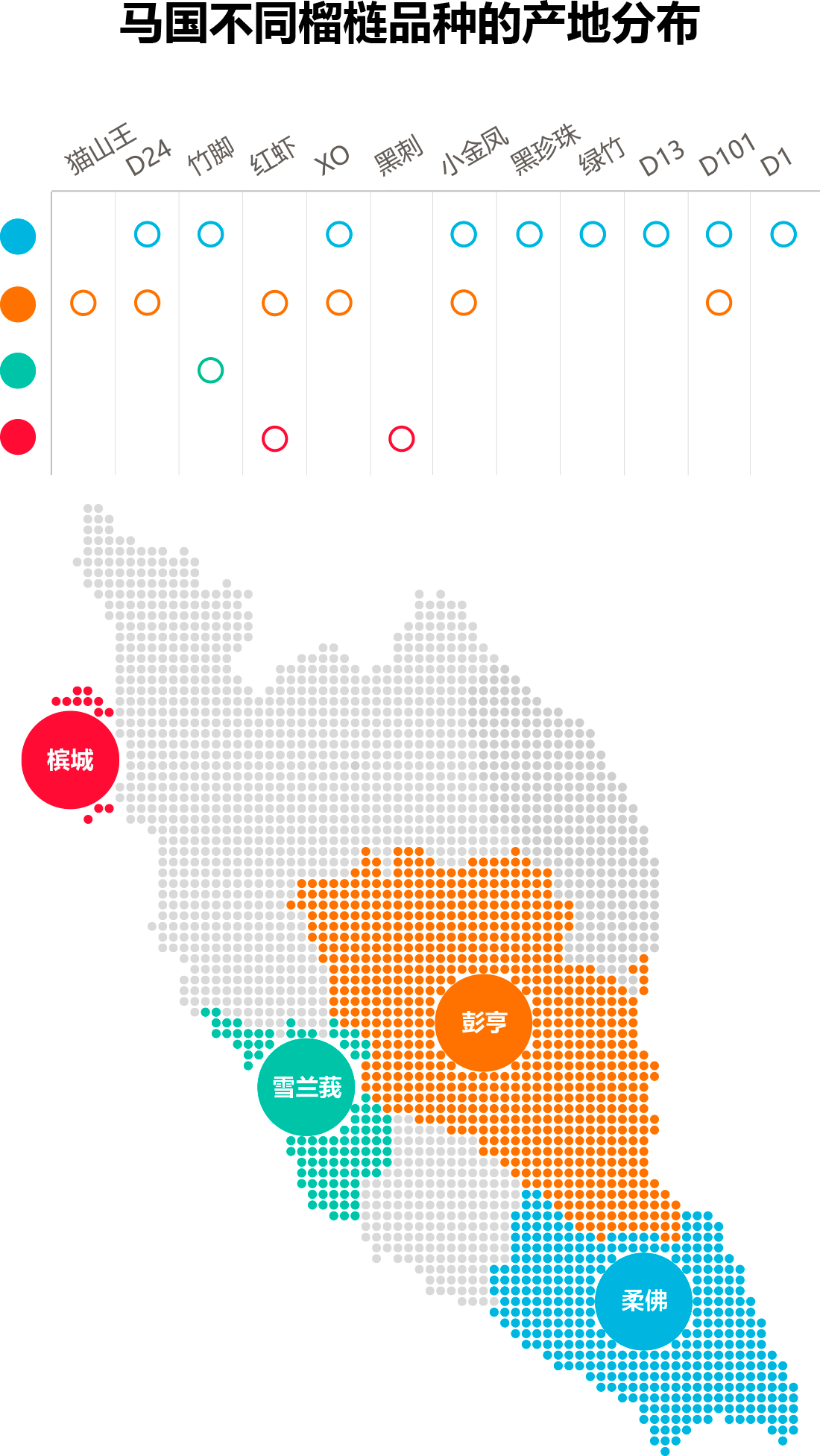 马来西亚很多地方都产猫山王,彭亨州猫山王以产量最丰、品质较稳定著称,俨然成为猫山王原产地代名词。