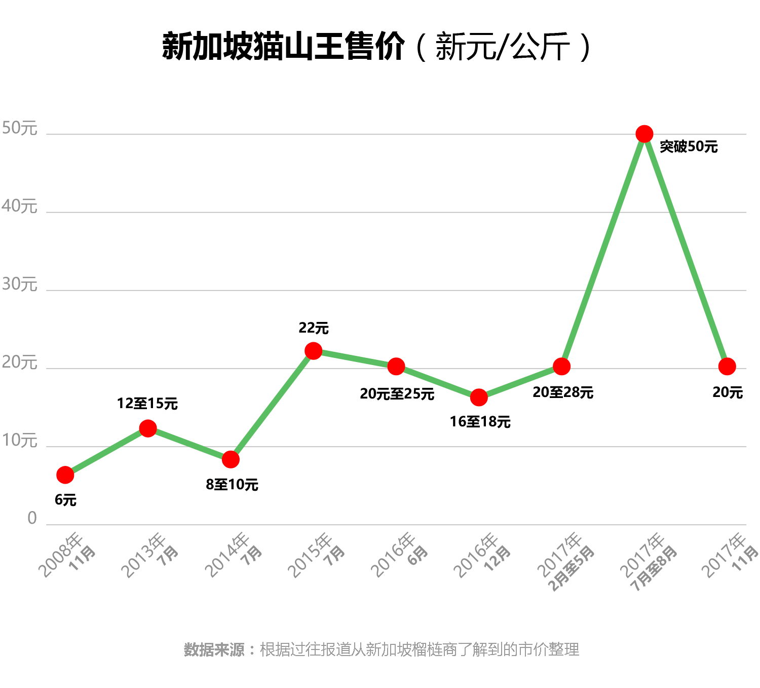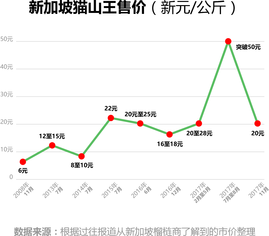 马来西亚共有200多个注册榴梿品种,属猫山王在海外的名气最大。