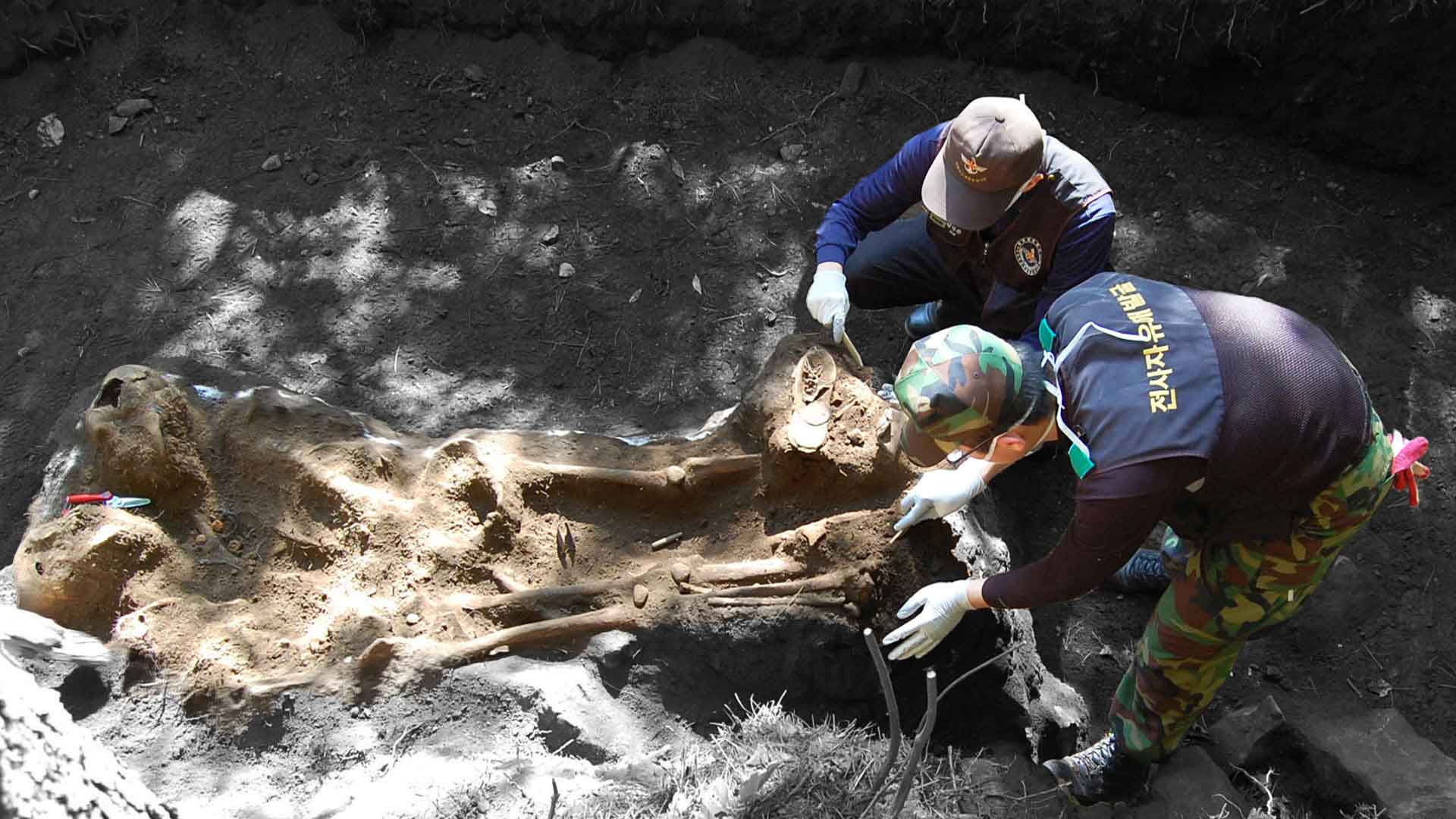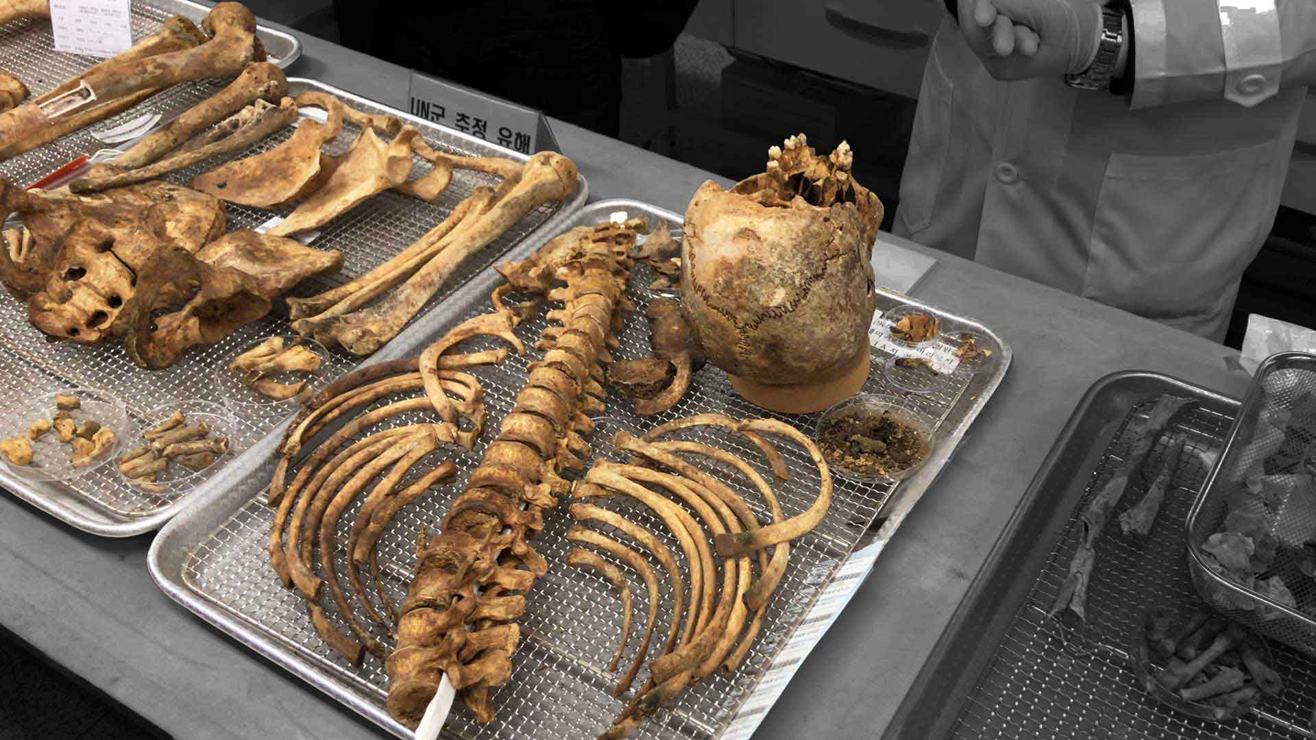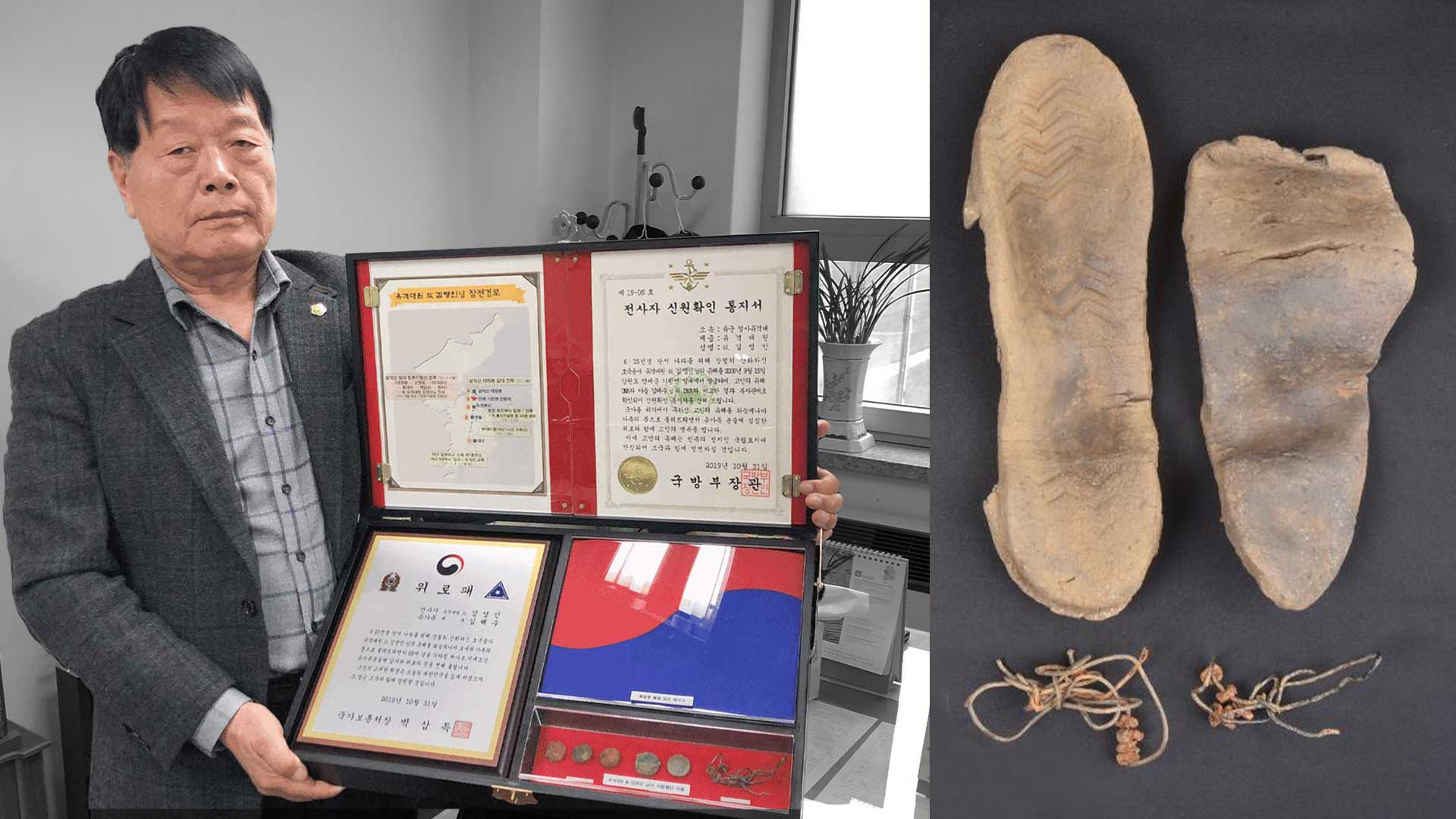 金海洙今年已经76岁了。他的父亲金永寅当年参加了朝鲜战争,几十年来一直杳无音讯。多年来,虽然父亲不在身边,但金海洙一直把父亲的遗照收藏在自己的钱包里。2019年10月,国防部遗骸发掘鉴识团通知他,2009年9月15日在江原道麟蹄郡发掘出的一具遗骸的身份确定为他的父亲。遗骸出土时,金永寅生前穿过的战斗靴、木槿花花纹纽扣、战斗靴鞋带等14件遗物也随之出土。