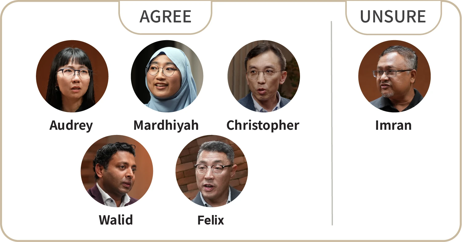 Among the six participants, five agreed that Singapore should be doing more to express solidarity with Palestine, while one remained unsure, although their views were similarly aligned. All expressed an understanding of Singapore’s position and limitations as a small state.