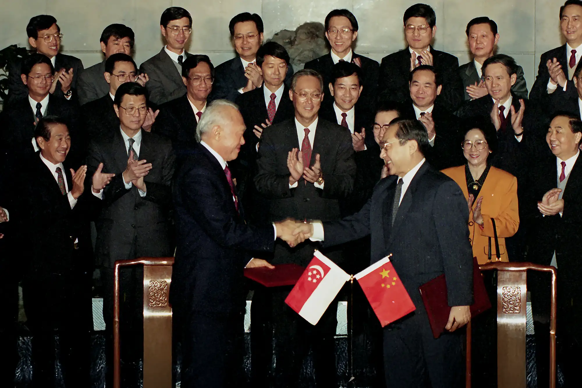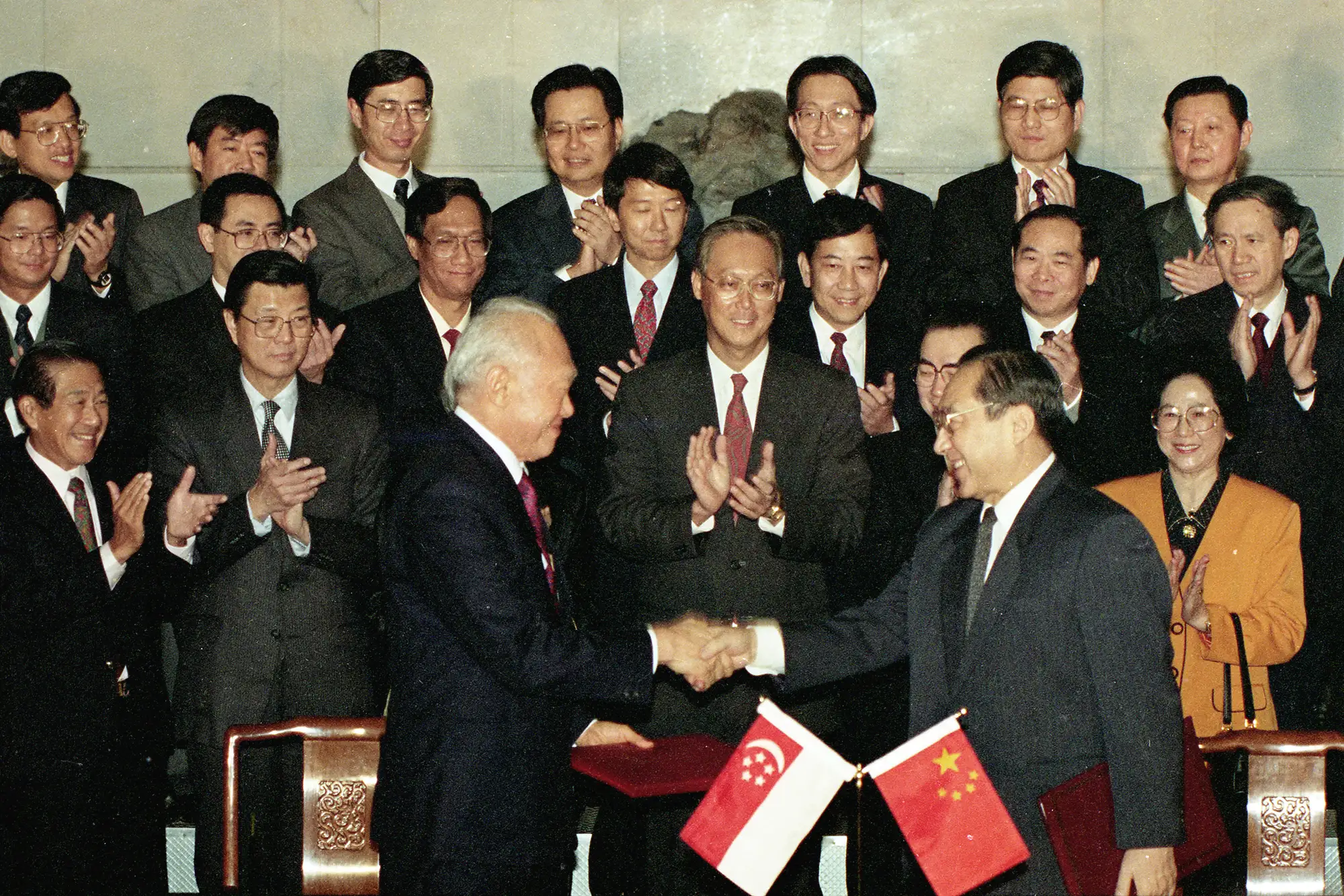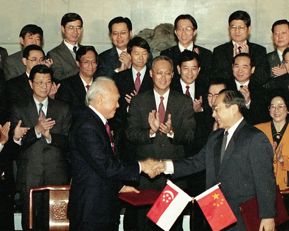 1994年2月26日,时任中国副总理李岚清和新加坡国务资政李光耀分别代表中新两国政府,在北京签署了合作开发建设苏州工业园区的协议。