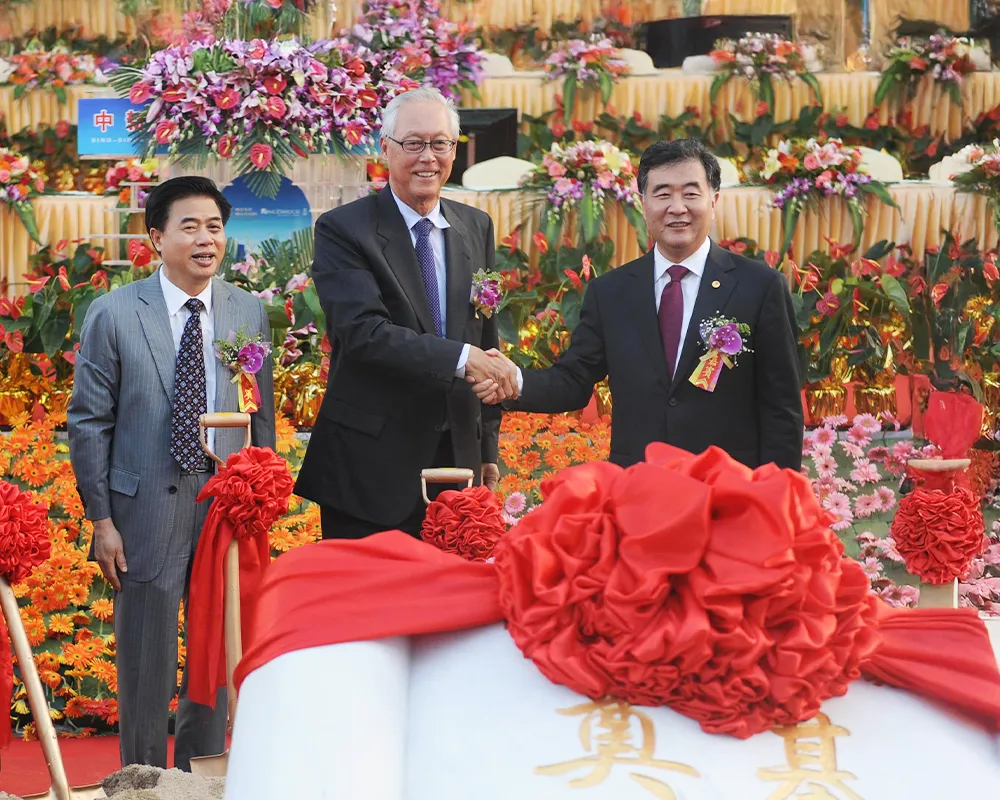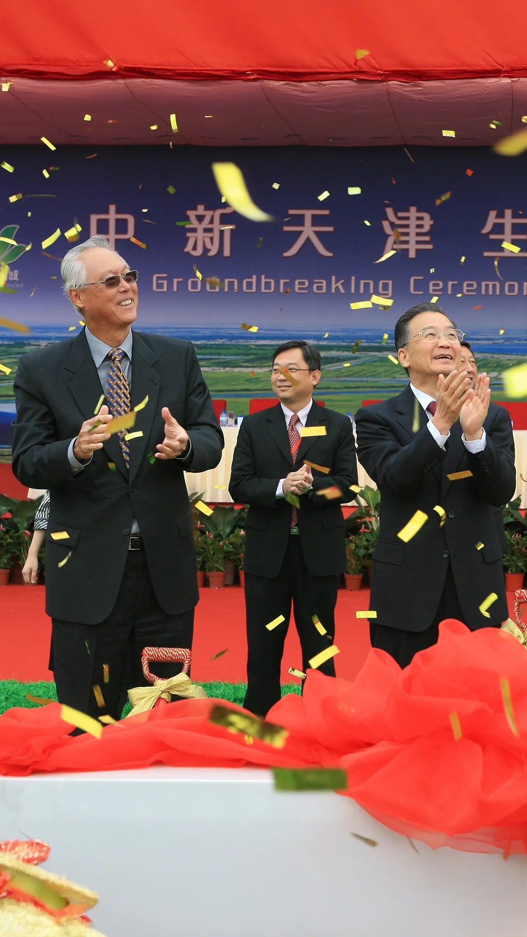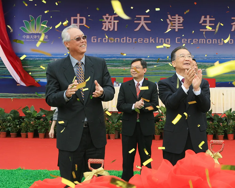 2008年9月28日,时任新加坡国务资政吴作栋和时任中国总理温家宝为新中第二个政府间合作项目——中新天津生态城主持开工奠基仪式。