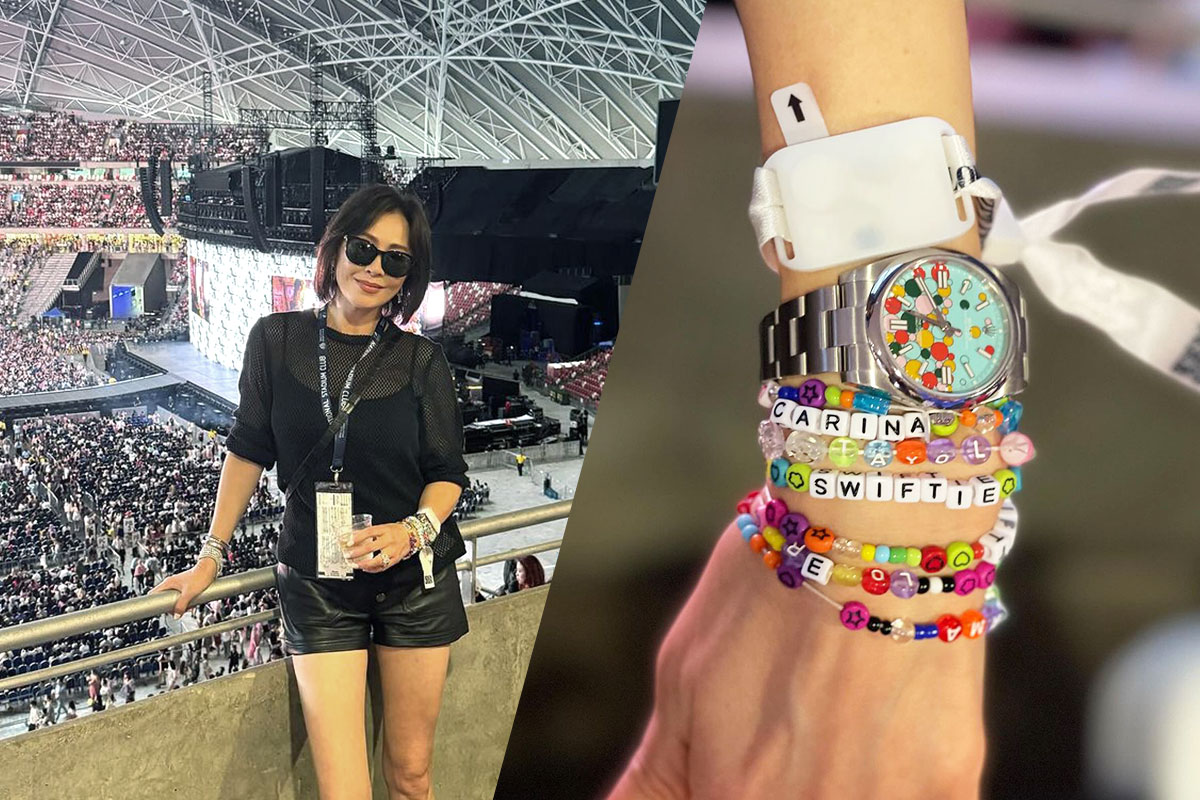 刘嘉玲3月7日晒出在泰勒丝演唱会现场拍摄的照片,还分享了她的友谊手链。