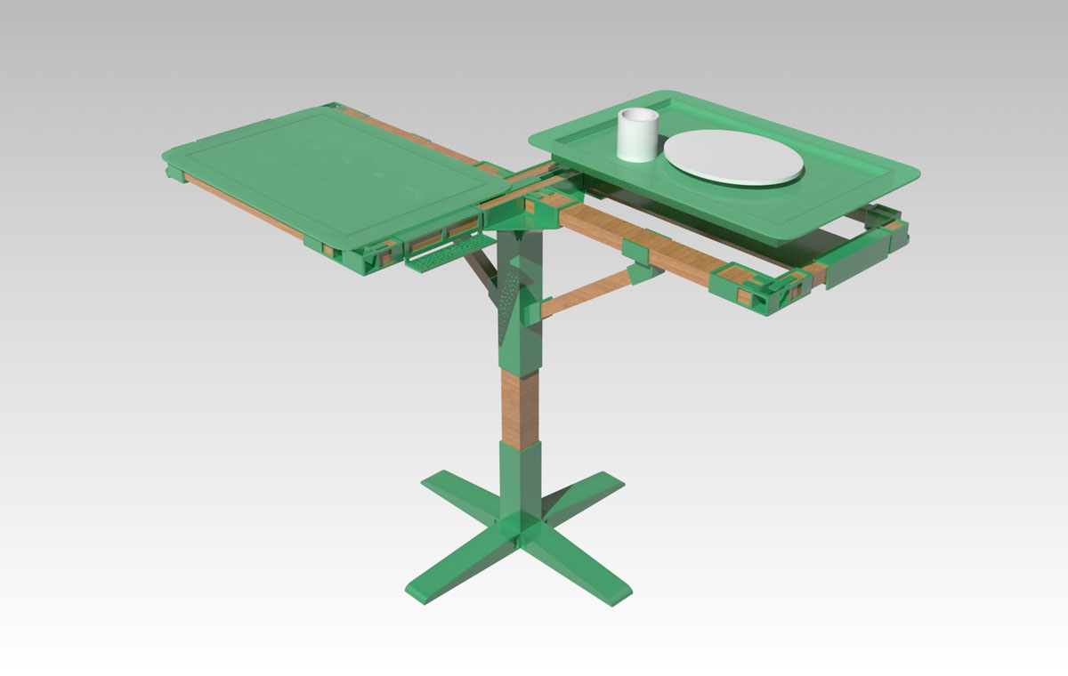 The protruding edges of a traditional tray design makes eating a rather uncomfortable experience. Trayble is designed to accommodate “placed-in” trays. When weighted with food items, the tray will sit in the frame and become a seamlessly flat tabletop. After dining, the tray will become lighter and automatically spring up, reminding the diner to return it. The design of Trayble aims to encourage more people to return their trays after use and keep the dining environment clean.