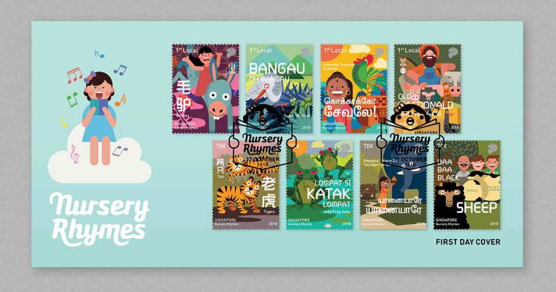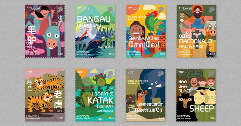 Using bright and vibrant colours with quirky illustrations, these carefully selected nursery rhymes stamps feature well-loved nursery rhymes popular among the young children in Singapore. This collection holds a compilation of nursery rhymes from our multi-racial background, and it can be used to educate our young Singaporeans on the values of each race. At the end of the day, we have a set of beautifully designed stamps that also speak of inter-racial harmony.