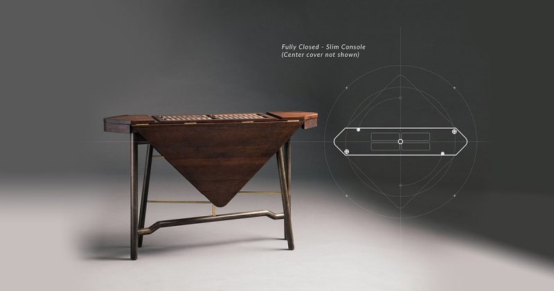The ‘XUAN’ Table is quintessentially Singaporean in the design - paying homage to culture and tradition. Using geometric diagrams and rotational curves, the square table was divided into triangles first, inspired by an avant-garde 1960s-style, three-sided mahjong table, chanced upon at the Goh Loo Club. The table can be transformed from a slim console, to a triangular table, to a square one. It is crafted out of specially selected Rengas wood for the surface and paired with FSC certified beech wood. Tucked into its centre are hidden compartments that house a set of rosewood mahjong tiles.