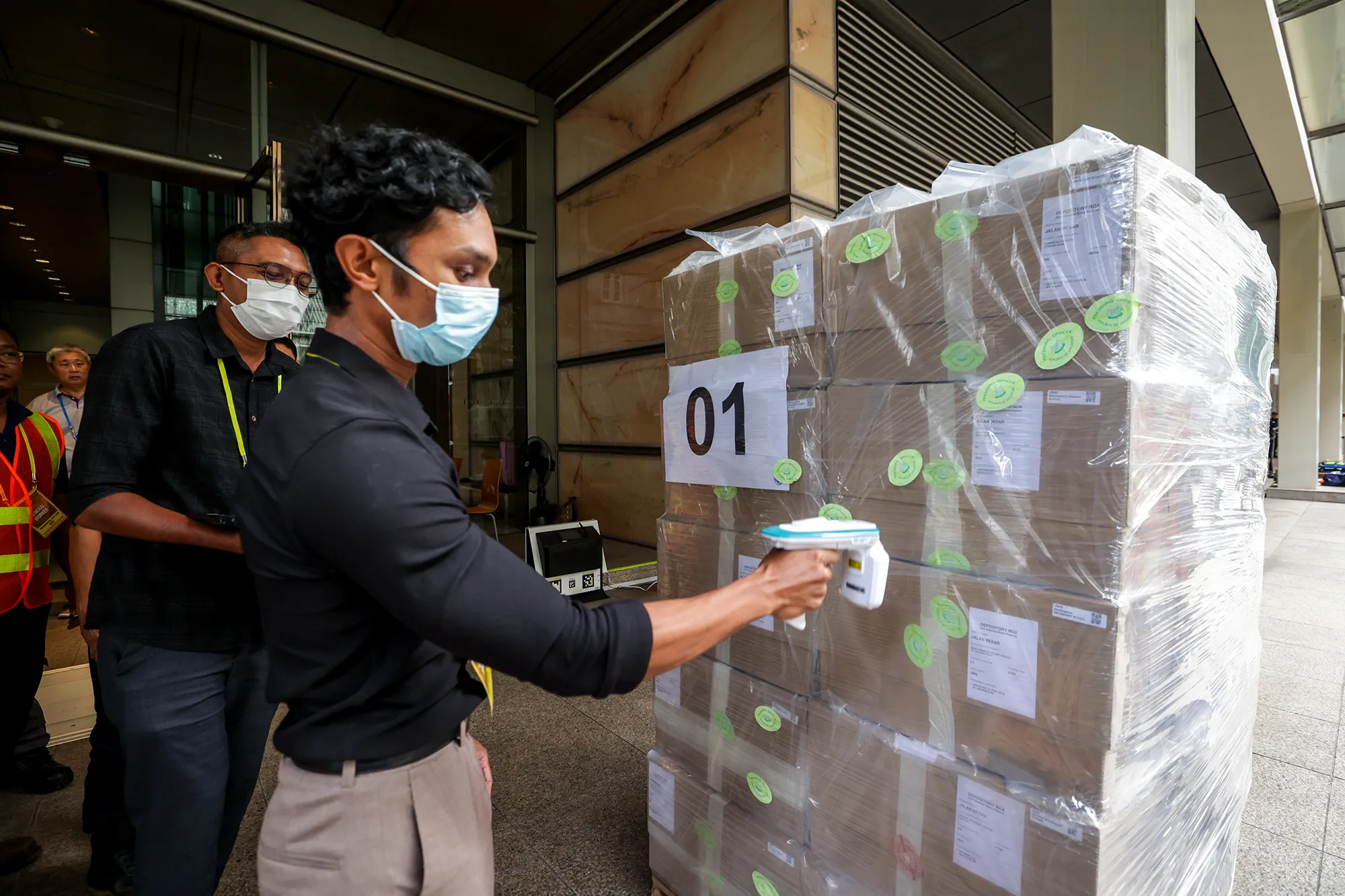 2023年总统选举的选票及其他选举文件于2024年3月2日从最高法院运送至大士南焚化厂销毁。工作人员把箱子搬上车前,须扫描箱子上的射频识别标签,以点算箱子确保没有遗漏。