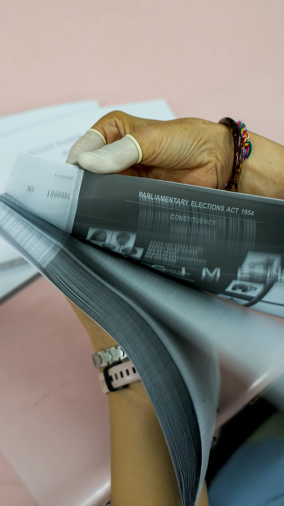 检验合格后,选票册会被捆绑起来,然后装箱,等待选举局最终验收。
