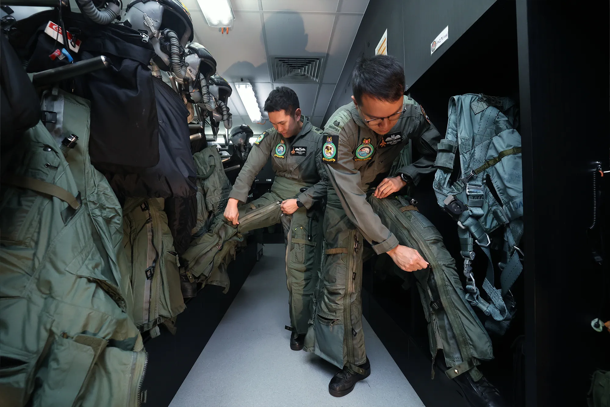 在空中,两人须应付高G力(重力)飞行,心理上也得时刻保持冷静与专注。许钊维说,他每天都锻炼身体,保持良好体魄。“这样一来,有紧急情况时才能应对。”